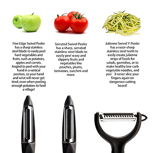 Vegetable Peeler Set - 3 in 1 Fruit & Veggie Peeler Set - Straight,Serrated and Julienne Blades, Sharp Stainless Steel Blade with Ergonomic Plastic Handle for Extra Grip, Durable Kitchen Gadget Set