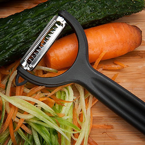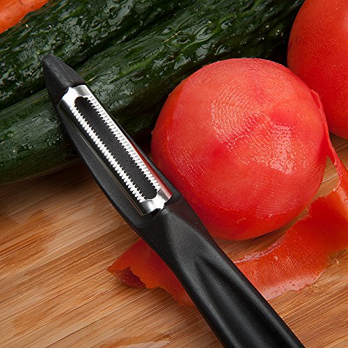 3 KINDS OF PEELER, EACH SERVES A PURPOSE - Straight edge peeler: useful for peeling hard skin veggies and fruit; Serrated peeler: better for peeling waxy and slippery fruits; julienne peeler: help creates julienne strips of food for salads or garnishes