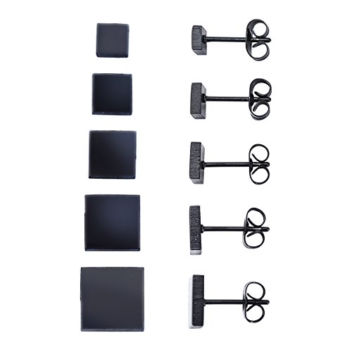 -. Title : HooAMI スタッド ピアス サージカルステンレス イヤリング シンプル 【ブラック】 ラウンド ユニセックス 4mm/5mm/6mm/7mm/8mm 5サイズセット(5ペア)
