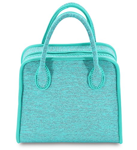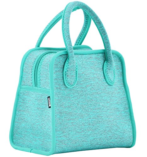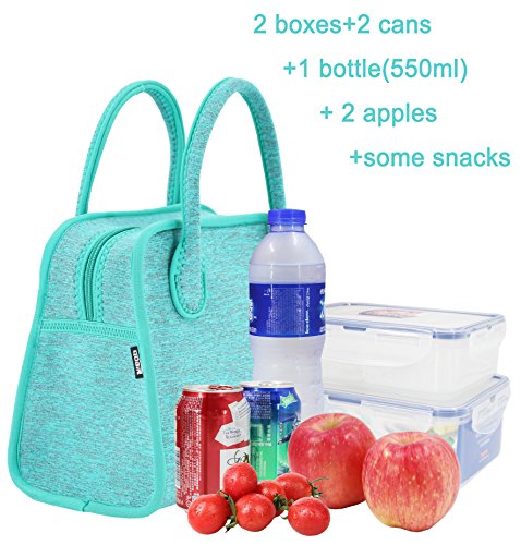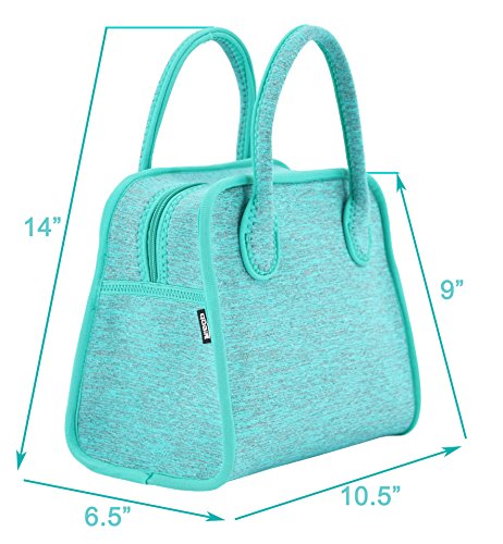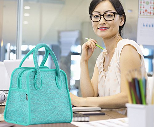 Neoprene Lunch Bag Tote by QOGiR - Large 10.5" x 14" x 6.5" inch(Fits Containers up to 10"Lx9”Hx6"W) - Keeping Food Cold (Warm) Appr 4 Hours~Green