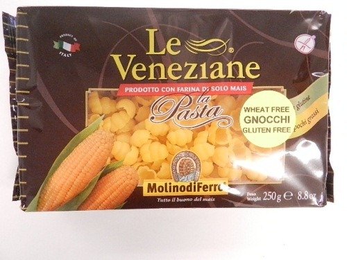 -. Binding : Misc. -. Brand : Le Veneziane -. Feature : The Le Veneziane corn pasta gets its characteristic golden color from its rich natural carotenes (vitamin A) / This corn pasta has a delicate and gentle taste that allows it to work with any sauce / It taste just as good as (some say better than) regular wheat pasta / gluten free corn pasta -. Label : Molino di Ferro -. Manufacturer : Molino di Ferro -. MPN : P105 -. PackageQuantity : 1 -. PartNumber : P105 -. ProductGroup : Grocery -. ProductTypeName : GROCERY -. Publisher : Molino di Ferro -. Studio : Molino di Ferro -. Title : Le Veneziane Italian Gluten Free Corn Pasta Gnocchi 250