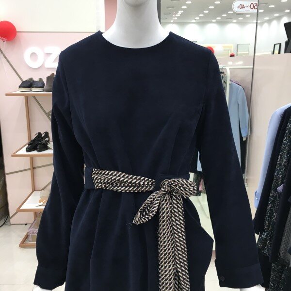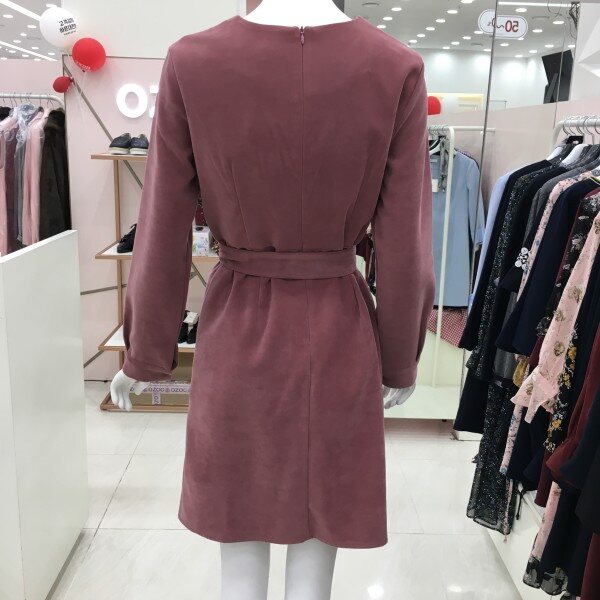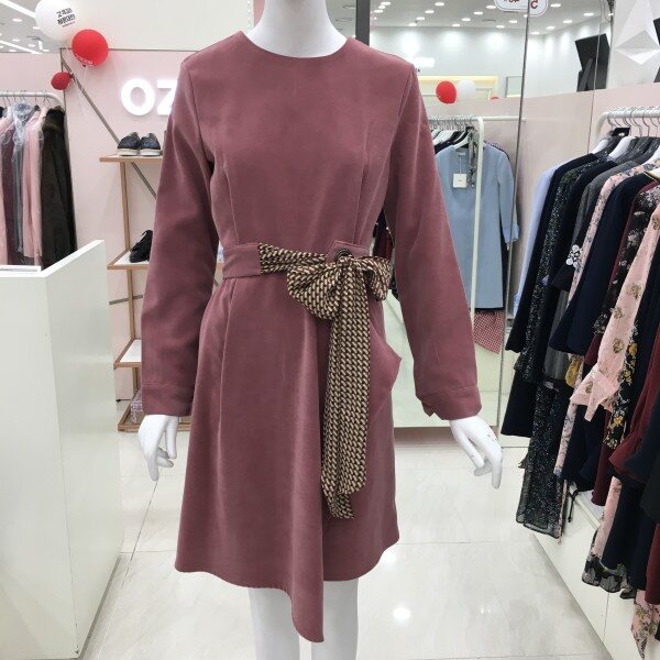 스카프 스트랩을 활용할 수 있는 원피스 소개해드려요.스트랩 없이 기본으로 활용가능하며 소재는 스웨이드 느낌이 나는 톡톡한 두께감으로 초겨울까지도 착용가능합니다.
