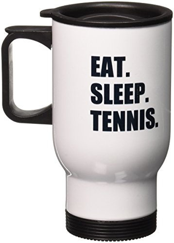 3dRose tm_180449_1 Eat Sleep Tennis-Black Text Sport Enthusiast Playing Fan Player Play Stainless Steel Travel Mug, 14-Ounce