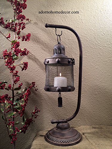 -. Title : Metal Lantern Candle Holder Stand Rustic Distressed Finsh Industrial Antique