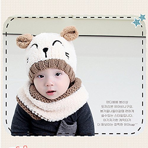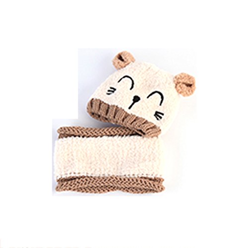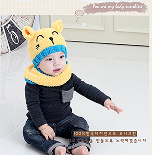 Product DescriptionFabric: 80% high quality polyester 80% high quality acrylic Material: Knitted Size: one size (head circumference 46-50cm(18.1-19.7in) / about 6-24 months baby) Package includes: 1 * baby hat 1 * scarf suit Suitable season: Spring, Autumn, Winter Applicable gender: baby boy/baby girl Color: red, yellow, white, pink0