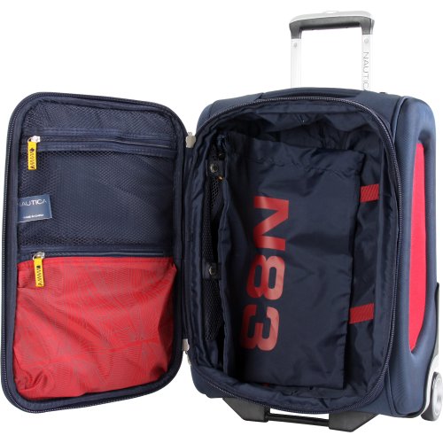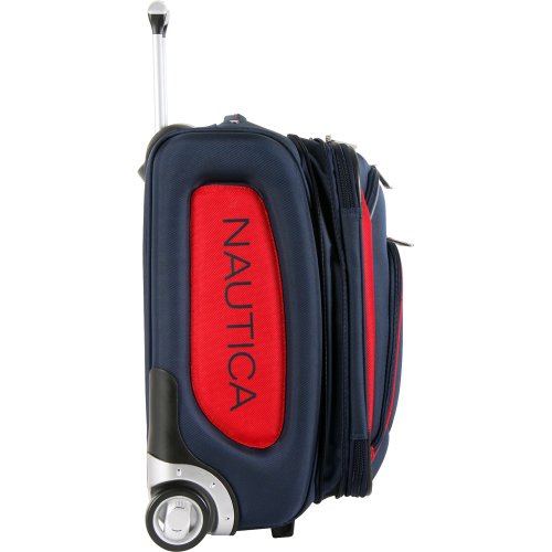 -. Binding : Apparel -. Brand : Nautica -. Department : lage -. Feature : Durable polyester fabric made of 840d two tone dobby wave with reflective trim details / Interiors are fully lined and feature valet straps and multiple zipper pockets / Telescoping trolley handles are recessed and feature push-button locking mechanism / Expandable for added packing capacity / Two exterior pockets and an add-a-bag strap -. Label : Randa lage -. Manufacturer : Randa lage -. NumberOfItems : 1 -. PackageQuantity : 1 -. ProductGroup : Apparel -. ProductTypeName : LAGE -. Publisher : Randa lage -. Size : One Size -. Studio : Randa lage -. Title : Nautica Lage Charter 20 Inch Classic Expandable Upright