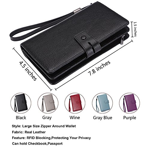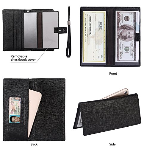 - CLASSIC FUNCTIONAL DESIGN - Measure 7.8 x 4.5 x 1.5 inches. 2 in 1 design: Slim removable checkbook wallet, can help you carry a small amount of cash, ID card, checkbook. Make this wallet to meet the variety of occasions and needs. Who needs a little more can use together, needs little can just carry slim removable checkbook wallet. Carry a comfortable travel wallet, removable soft wrist strap, makes it more easy to carry.