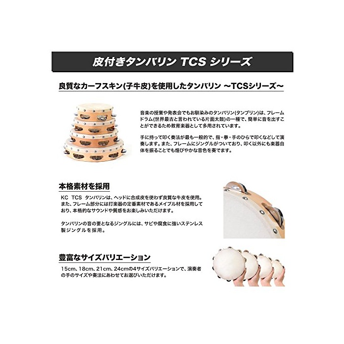 KC TCS 탬버린은,헤드에 합성 가죽(껍질)를 사용하지 않고 양질인 칼프스킨(송아지 가죽(껍질))를 사용