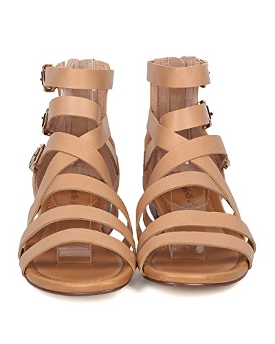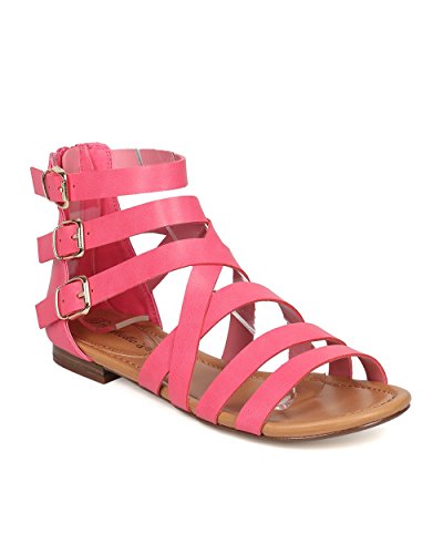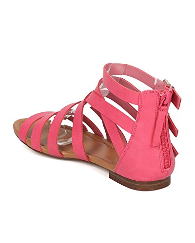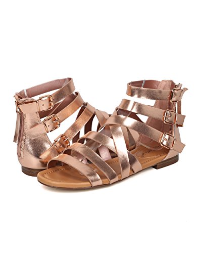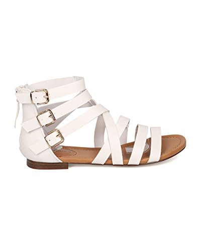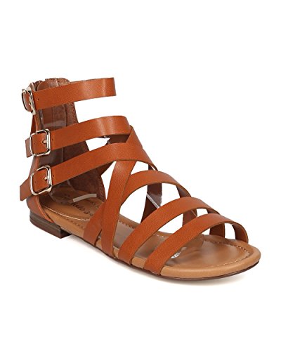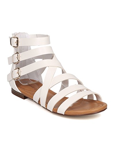 Women Leatherette Gladiator Sandal - Casual, Summer, Dressy - Strappy Flat Sandal - GG38 By Bre...