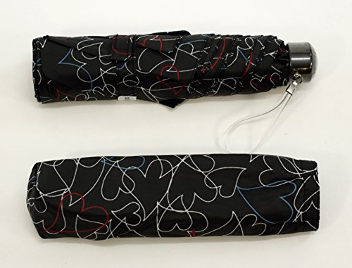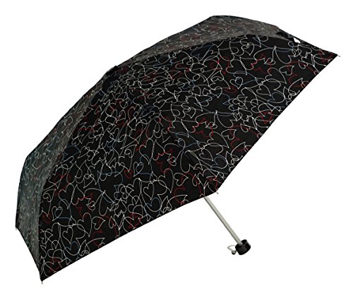 -. Title : アテイン 婦人用 軽量楽々3段折畳傘 親骨50cm ハート&ハート 黒 5154