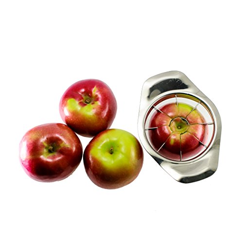 APPLE SLICER STAINLESS STEEL 8-BLADE CORER CUTTER WEDGER DEVIDER WITH ULTRA RAZOR SHARP METAL BLADES ANTI-SLIP HANDLE DISHWASHER SAFE TRENDY FRUIT KITCHEN TOP CHEF GADGET EQUIPMENT FOR ALL SIZE APPLES