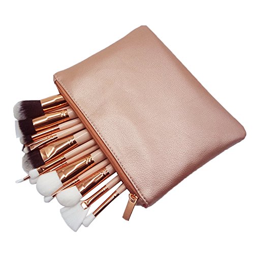 Makeup Brushes Set, KIMYO Foundation Blush Blending Eyeshadow Eyeliner Lip Cosmetic Tool Kit with PU Leather Package (15PC Pink Brushes Set)