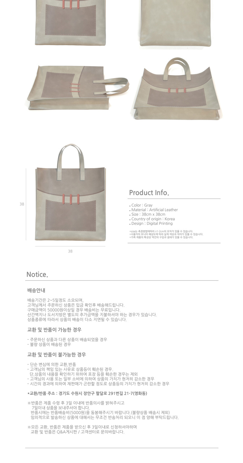배송기간은 2~5일정도 소요되며, 고객님께서 주문하신 상품은 입금 확인 후 배송해드립니다. 구매금액이 50000원 이상일 경우 배송비는 무료입니다. 산간벽지나 도서지방은 별도의 추가금액을 지불하셔야 하는 경우가 있습니다. 상품종류에 따라서 상품의 배송이 다소 지연될 수 있습니다.