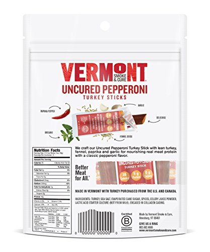 -. Title : Vermont Smoke & Cure Mini Meat Stick Go Pack, Turkey, Antibiotic Free, Gluten Free, Uncured Pepperoni, .5oz Stick, 6 Count