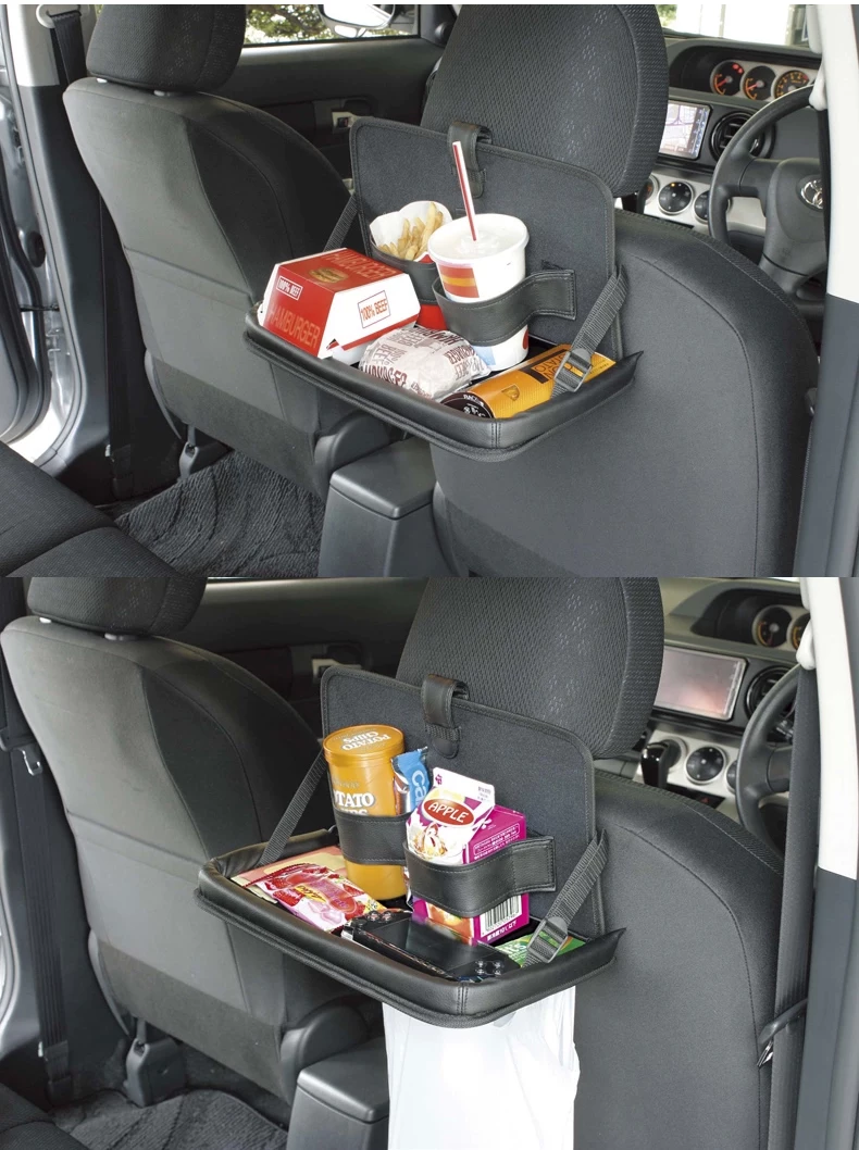 Product Platform peripheral groove design, increase designed to ensure a variety of solid and liquid food will not fall on the car floor, ensure the car clean, beautiful and practical. Rear rack with the tape, set directly in front of the headrest can be fixed at.