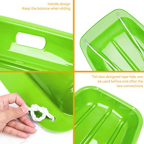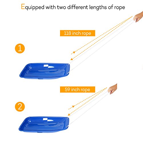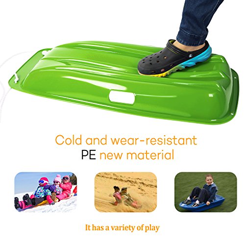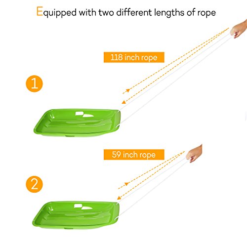 Studio : Vikeepro Publisher : Vikeepro Product Description Feartures: Two different length of pull ropes-- for easy pulling your sled back up the hill. Easy Handling--This toboggan is designed for safety and easy maneuverability, boasting wide easy-grip sled walls as well as an attached rope for secure handling when the kids hit the slopes. Safe to Use Kids snow sleds made high quality crack-resistant and cold-resistant plastic, and there are two hole handles in both sides and three blades on the bottom. Two handles and three blades add extra security for your kids. Parents can pull your kids through the pull rope, it will bring funnt time for you and your little kids. 0