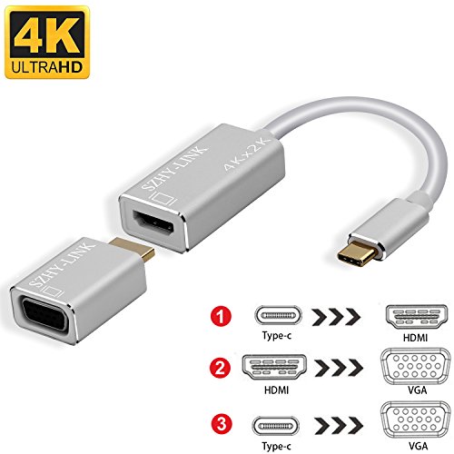 -. Title : USB C to HDMI VGA Adapter,SZHYLINK 3 in 1 USB 3.1 Type C to HDMI 4K,HDMI TO VGA Cable Thunderbolt 3 Compatible for Apple New Macbook Pro 2017, Samsung Galaxy S8,ChromeBook Pixel Male to Female-Alumini