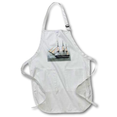 3dRose apr_38112_4 USS Navy Constitution Ship Full Length Apron with Pockets, 22 by 30-Inch, Black