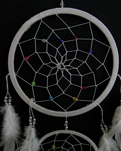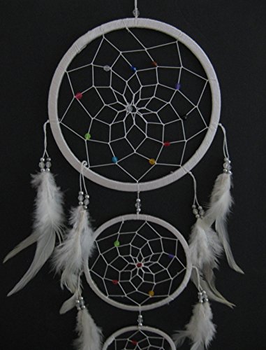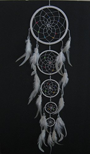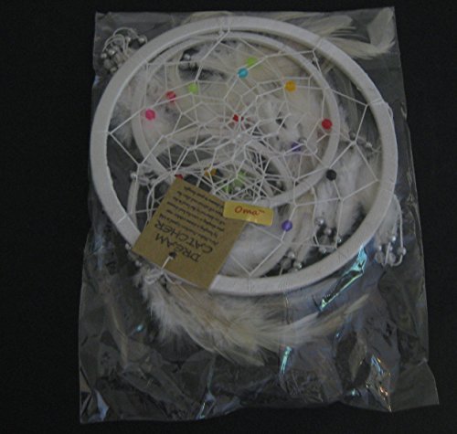 Dream Catcher - Large Traditional Dream Catcher With WHITE Feathers And Colorful Beads 33" Long x 7" Diameter - OMA BRAND