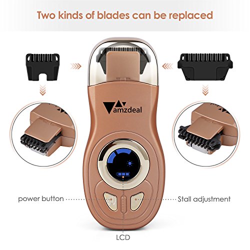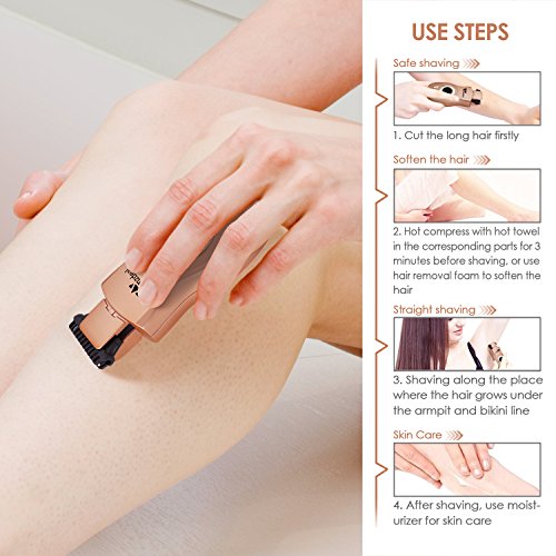 - 【6 replaceable tips】This hair removal machine comes with two sized blade to use on different parts, wide cutter for large areas like arms, legs and back, narrow tip for small and sensitive parts, such as face, nape, underarms and bikini line.