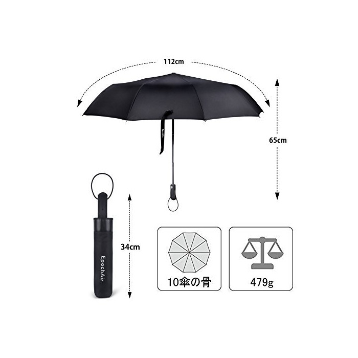 원본상품명: EpochAir [2017年改良版] 折り?み傘 ワンタッチ自動開閉 10本骨 210T高密度Pongee布 耐風撥水 晴雨兼用 ?納ケ?ス付き 紳士 ブラック