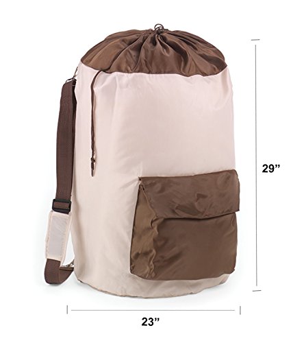 Homz Messenger Style Laundry Bag with Adjustable Strap, Tan