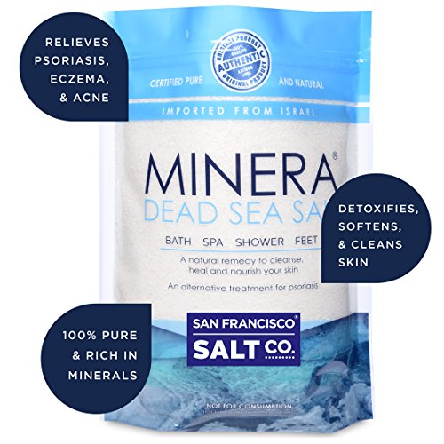 -. Feature : RELIEVE PSORIASIS, ECZEMA & ACNE: A safe, natural alternative to treating skin conditions. According to published studies, about 80%-90% of psoriasis patients visiting the Dead Sea for treatment, experience significant improvement of their skin. / CLEANSE, SOFTEN AND DETOXIFY SKIN: Dead Sea Salt's unique mineral composition gives this salt its therapeutic qualities for skin care. While most sea salts are P.R.Imarily Sodium Chloride; Dead Sea Salt is comP.R.Ised of 21 beneficial minerals including: Magnesium, Potassium, Calcium, Bromide and Sulfur. / HIGH MINERAL CONTENT FOR BATHING ONLY: Dead Sea Salt is for BATH/SPA use only and is NOT a food-grade salt suitable for consumption. / CERTIFIED AUTHENTIC - ALL NATURAL: Our Minera® Dead Sea Salt is the same 100% pure, mineral-rich salt used in spas and treatment centers around the Dead Sea in Israel. Minera® Dead Sea Salt has NOT been mineral depleted or blended with other salts as many "Dead Sea Salts" sold on the market today. / 100% MONEY BACK GUARANTEE - The San Francisco Bath Salt Company is confident that you will be happy with the quality of our products and stand behind every single item. If you are not satisfied with your purchase return the product for a full refund.