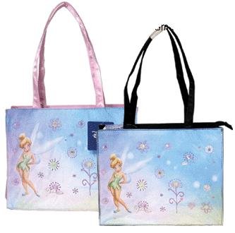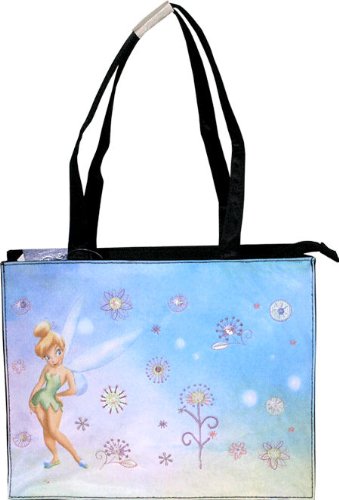Carry your favorite character with the Tinkerbell Large Tote Bag with Black Trim This cute and trendy purse features Your favorite fairy Tinkerbell decked out in her adorable signature green dress standing in an open air field of flowing flowers. Perfect for your essentials Matches virtually any outfit. Carry to work, school, the gym or use as an adorable beach bag Measures12"x9"x4".Shoulder Bag Styling Zippered Closure Keeps Contents Safe Fun "Tinkerbell" Fairy Motif