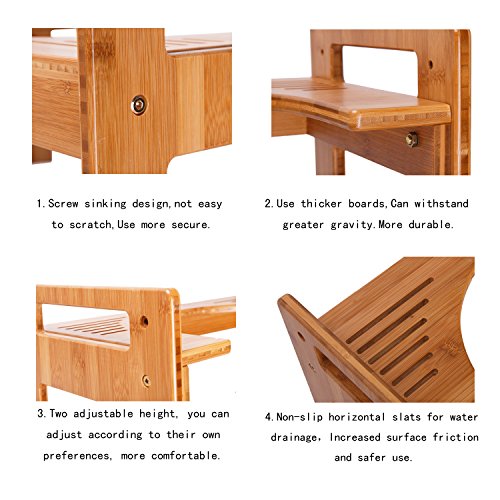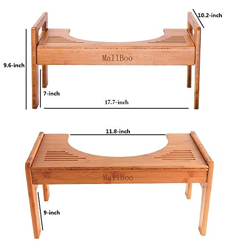 MallBoo Luxury Bamboo Bathroom Toilet Stool Portable Squatting Potty Stool Adjustable Height (7" or 9")