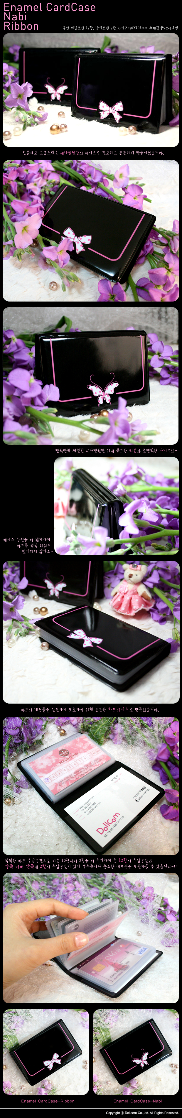 구 성 : 비닐포켓 12장, 날개포켓 2칸 규 격 : 70x105(mm) 재 료 : pvc에나멜 제조사 : Dollcom 원산지 : 한국