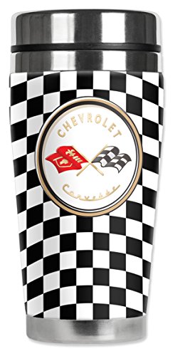 Mugzie GM-134-MAX "Checkered Flag Corvette Logo" Stainless Steel Travel Mug with Insulated Wetsuit Cover, 20 oz, Black