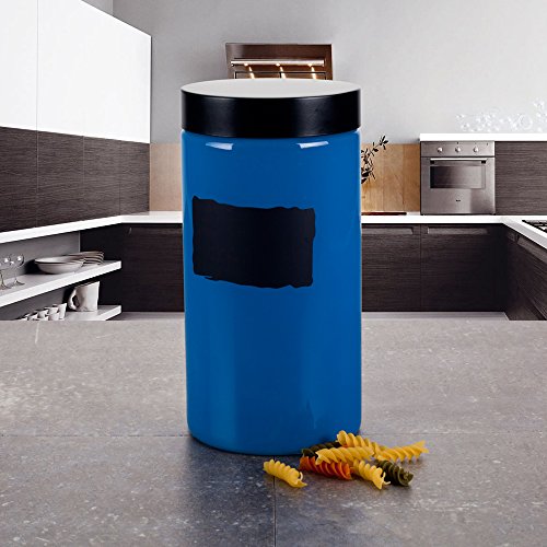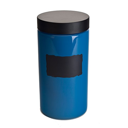 Housewares International 34232 Harbor Glass Jar with Black Lid, 57.4 oz, Blue