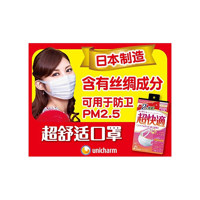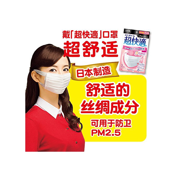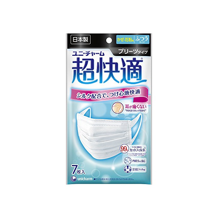 원본상품명: (日本製 PM2.5??)超快適マスク プリ-ツタイプ シルク配合 ふつう 7枚入(unicharm)