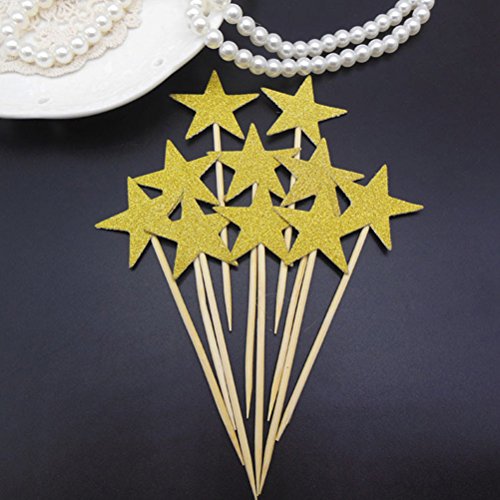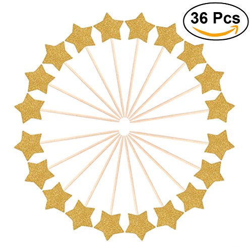 Cupcake Picks NUOLUX Glitter Star Cocktail Sticks Food Toothpicks Cake Decoration 36pcs (Gold)