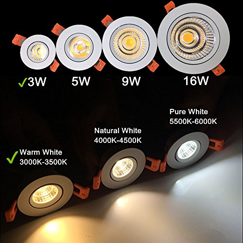 - BASIC PARAMETERS: Dimmable, Dia.2.67in(68mm), Cutout Dia.2in(51mm), Directional 60 beam angle, White Trim, Directional Adjustable, CE RoSH FCC Approved, 3W COB spotlight, COB integrated chip, Driver Included, working with line voltage directly.