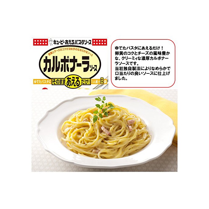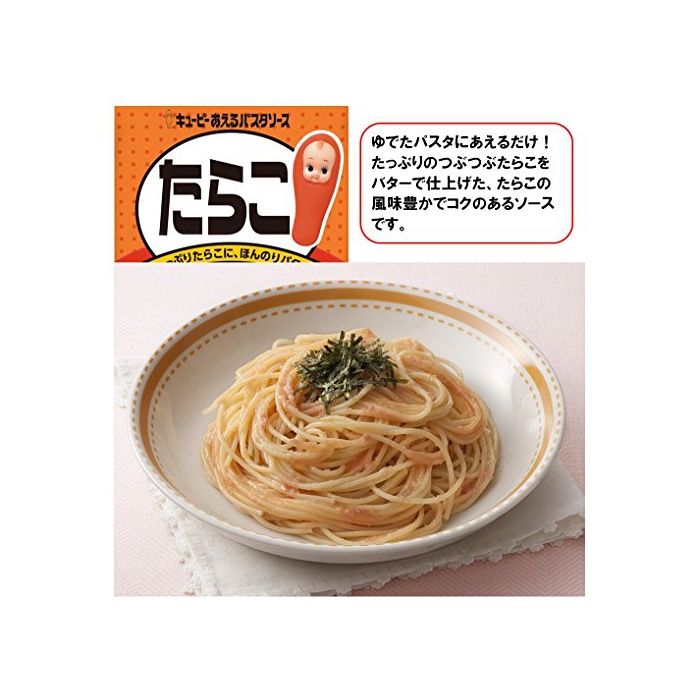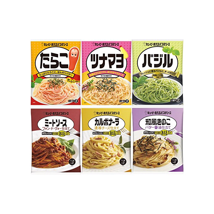 원본상품명: キユピ あえるパスタソス6種 [カルボナラ1袋(2食入)、たらこ1袋(2食入)、ミトソス フォンドヴォ1袋(2食入)、バジル1袋(2食入)、ツナマヨ1袋(2食入)、きのこの油バタ