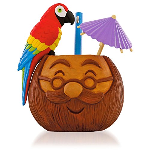 Don’t Worry, Be Happy Santa Coconut Mug With Parrot and Parasol Musical Ornament 2015 Hallmark