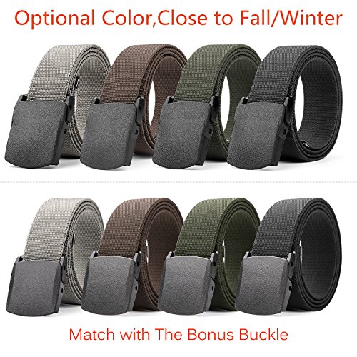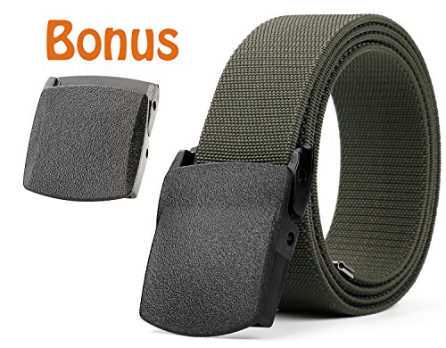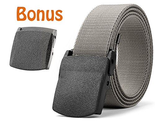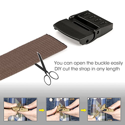 Removable Plastic Buckle - The light plastic buckle is removable, which allows you to trim the belt strap down to fit your waist size if it's too long for you, and then melt the edge with lighter.