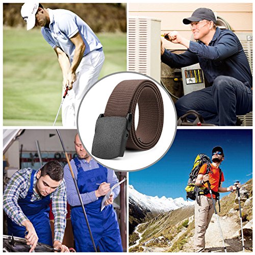 Best Choice for Outdoor Work/Activities - This is a comfy stretch, plastic buckle belt, suits for playing golf, hiking, fishing, etc. Also suit for those who need to blend down or squat during working time, like plumber. But if you want to hang heavy things on belt, we won't recommend it.