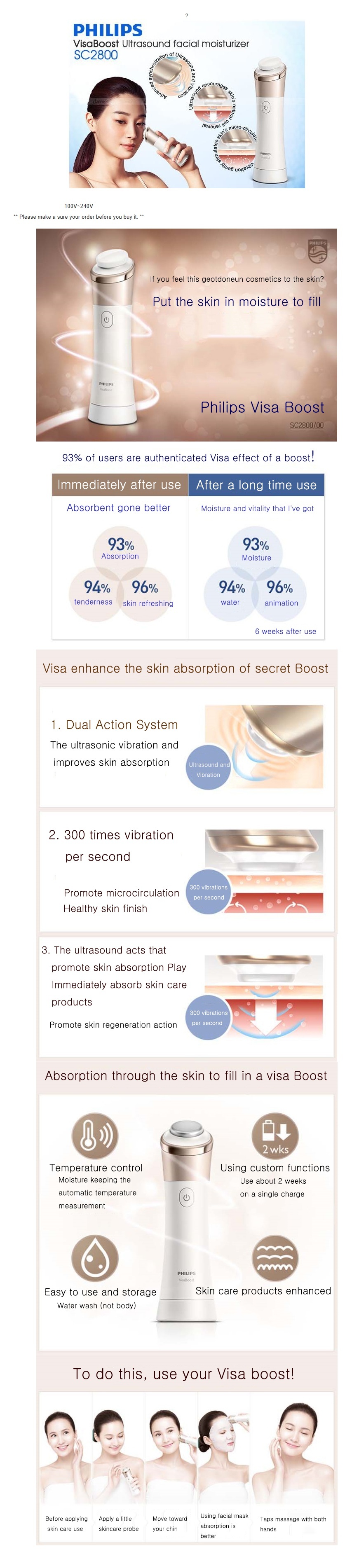 Enhance the absorption for better skincare benefit Advanced synchronization of Ultrasound & Vibration The new Philips VisaBoost Ultrasound Facial Moisturizer helps your skin absorb skincare products better and faster, enhances skincare efficacy, reveals refreshed moisturized revived skin from inside out!