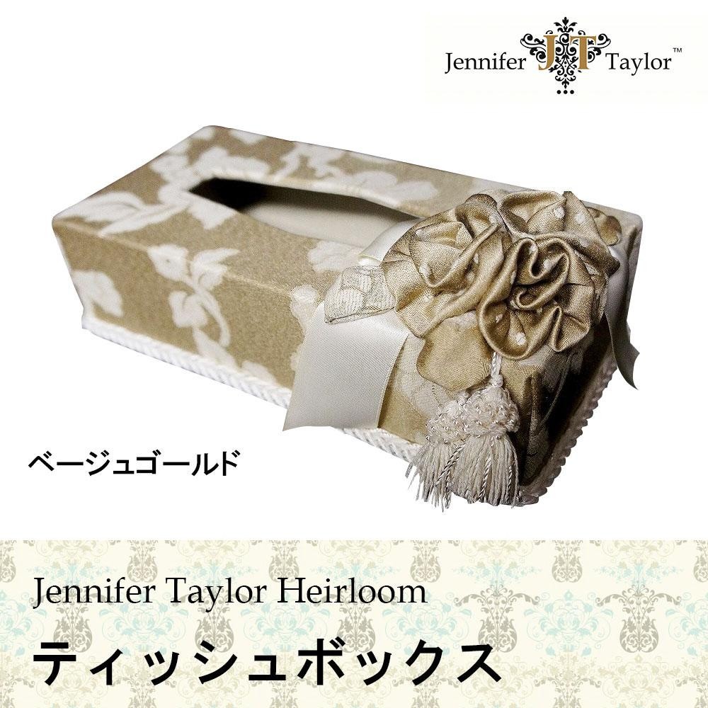 女性の心をくすぐるタッセルがポイント♪エレガントで高級感の有るデザインと実用性を兼ね備えた商品です。 製造国:中国 素材・材質:芯材:厚紙生地:コットン58%、ポリエステル42% 商品サイズ:26×12.5×H6.5cm ※サプライヤー直送品【商品名】Jennifer Taylor ジェニファーテイラー Heirloom ティッシュボックス ベージュゴールド 32112TB