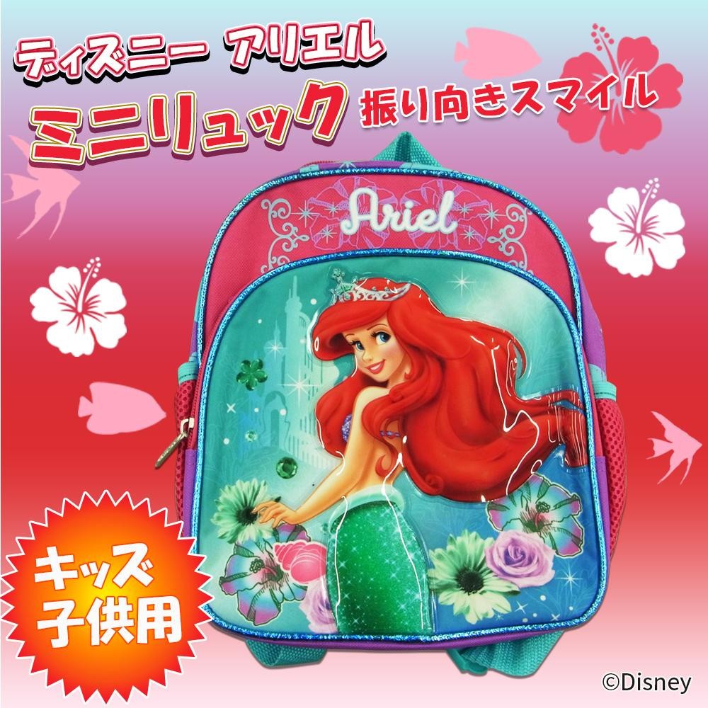 アリエルのデザインが可愛い、お子様向けのリュックです。両サイドにもポケットが付いており、ちょっとしたものを入れるのに便利。国内ライセンス商品は落ち着いた柄・色合いが多いのですが、派手でかわいいデザインは海外輸入ならでは♪ |