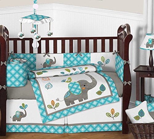 Sweet Jojo Designs Turquoise White and Gray Mod Elephant Girl or Boy Musical Baby Crib Mobile