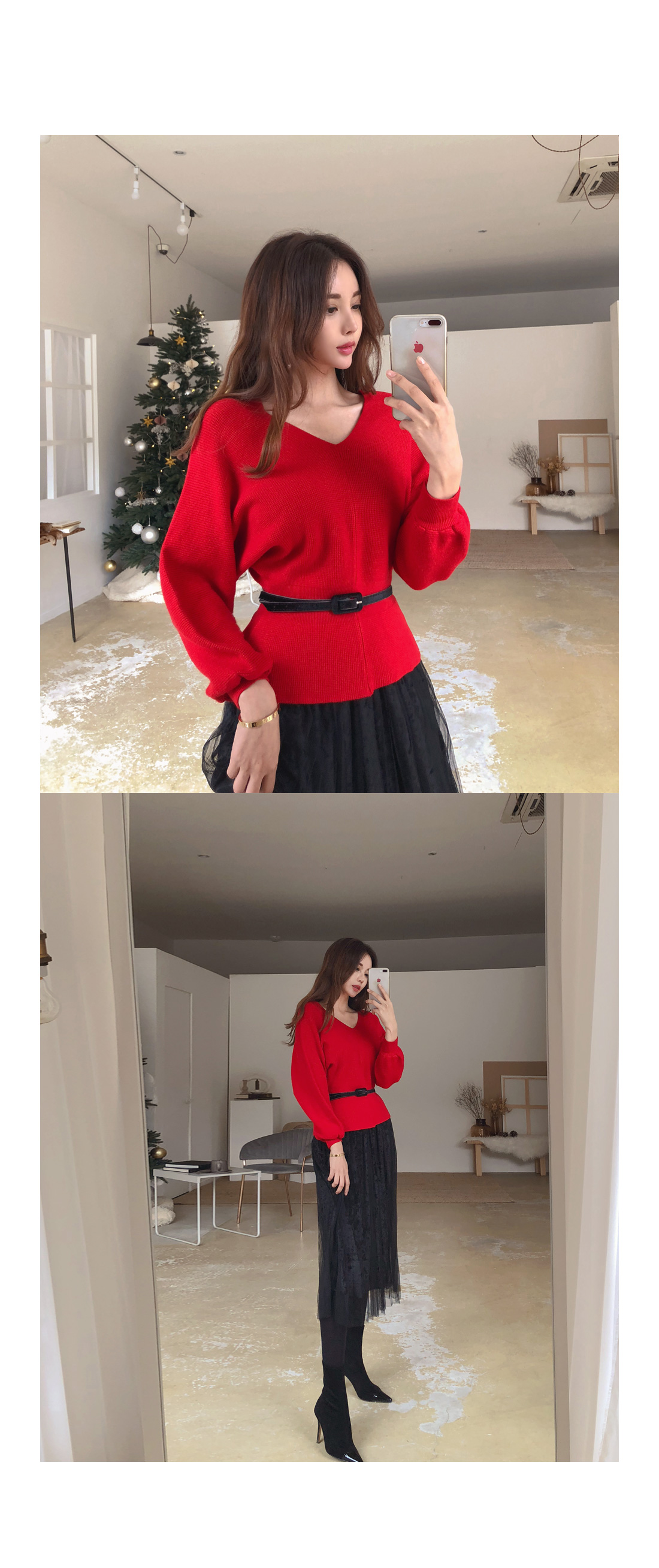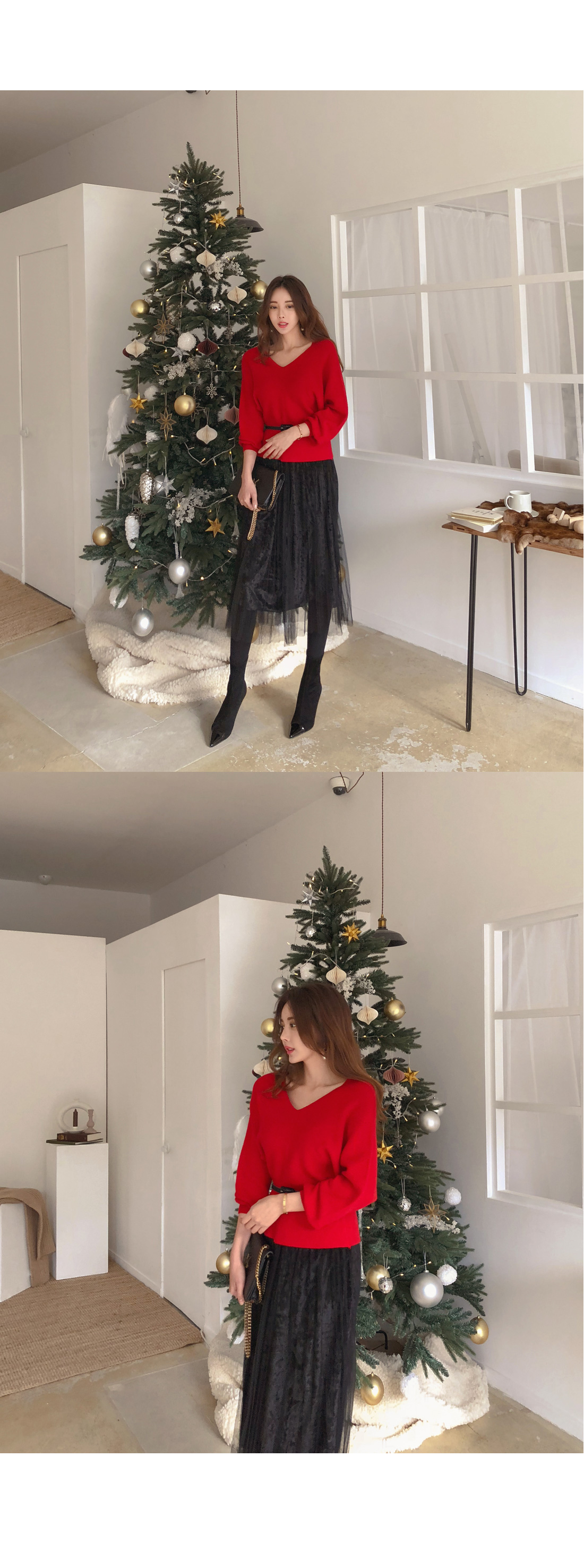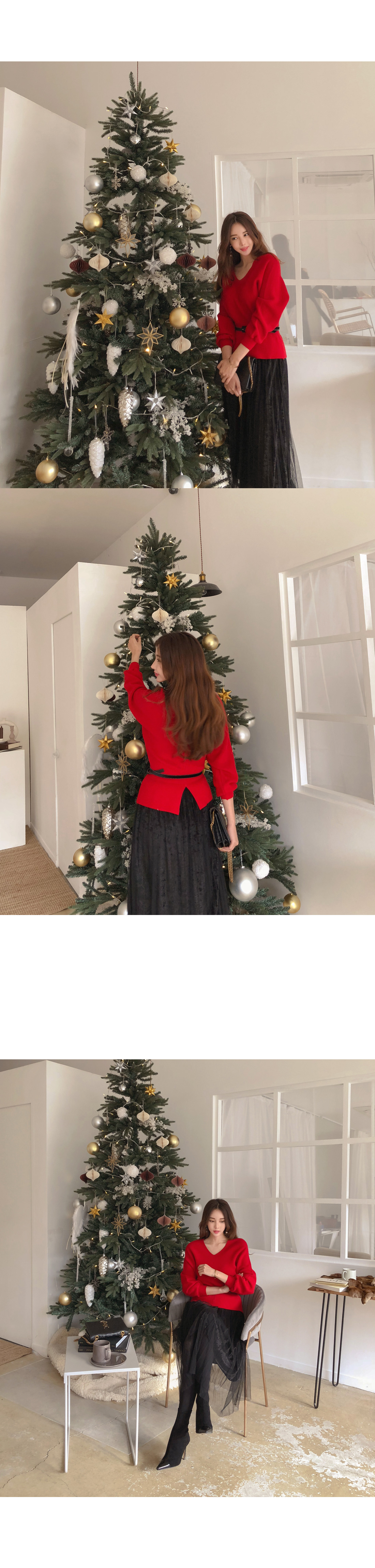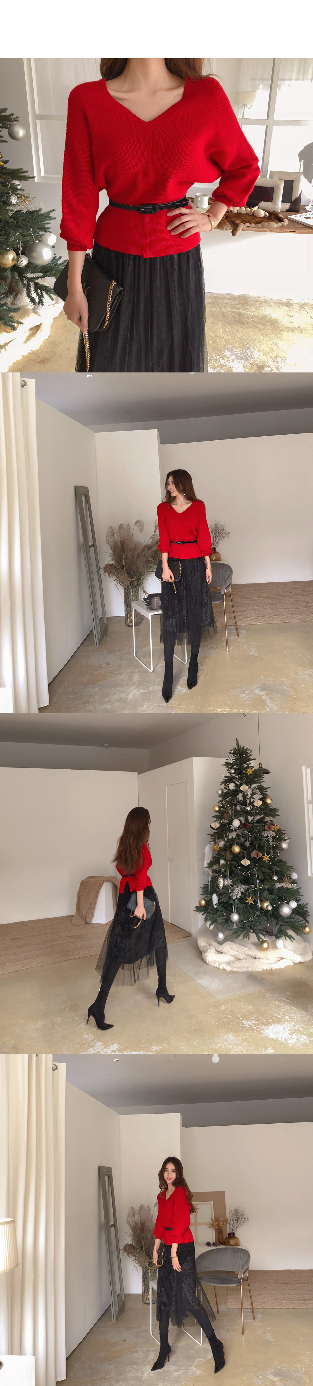 니트는 프론트와 백라인 모두 브이네크라인으로