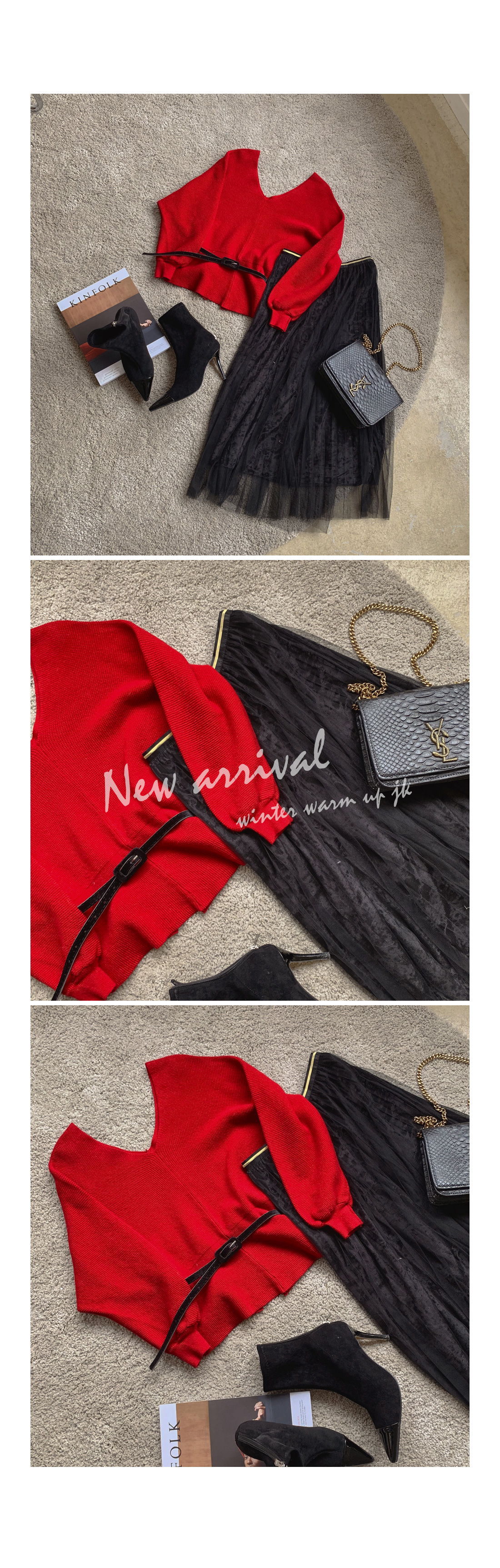 스커트, 니트, 벨트 3 SET 세트로 구성된 아이템으로