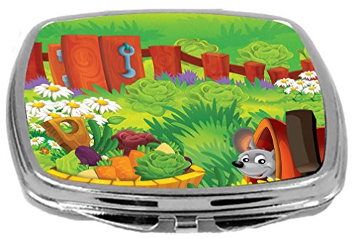 Rikki Knight Cute Little Mouse Peeking Cartoon with Farm Vegetables Design Compact Mirror, 17 Ounce