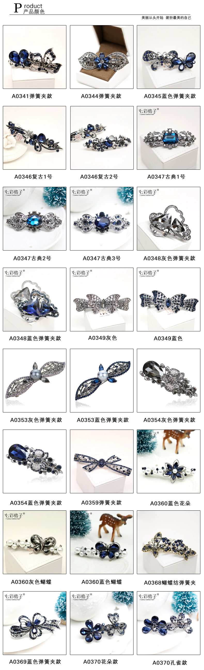 七彩格子古典饰品发夹发饰韩国头饰水钻弹簧夹横夹顶夹发夹一字夹