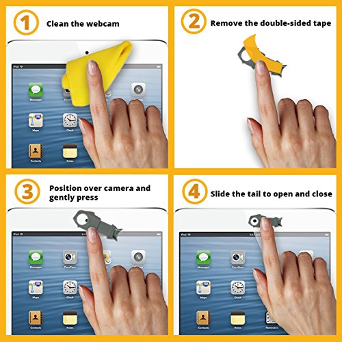 -. Feature : [Protects Your P.R.Ivacy] Covers your webcam when not in use, preventing hackers from spying on you through your webcam. Slides open when you need to use your webcam, providing utmost security to you and your loved ones. / [Thin, Durable and Elegant] Made of environmentally friendly polyurethane, it endures frequent use. With its elegant design, it measures only 1.65 mm thick and does not interfere with closing your laptop. / [Fits on Most Devices] Covers webcams of MacBooks, iPhones, iPads, PCs, laptops, Android phones and Android tablets. Attached by double sided adhesive tape, it can be removed easily. / [Pack of 3] For your multiple webcams and family members. / [Satisfaction Guaranteed] 100% MONEY-BACK GUARANTEE if you are not satisfied with the product.