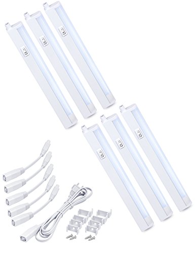 12" INCH UNDER CABINET LED T5 LIGHT BAR (6PK, 1 POWER CORD, White) —Features a cool-touch designed light bar to brighten up your space – Perfect cabinet accessory for task and mood lighting in any room