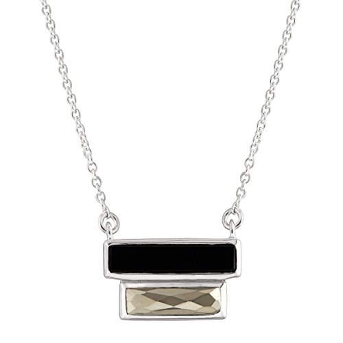 You'll be ready for one of Gatsby's illustrious parties when you show up in this art deco-inspired necklace, featuring black agate and pyrite pendants bezel-set in sterling silver at the base of the piece totaling 5 1/4 ct